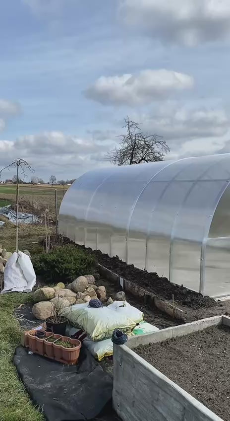 Konstrukcja wykonana jest z ocynkowanej stali, a pokrycie z poliwęglanu komorowego z filtrem UV chroniącym rośliny przed słońcem.